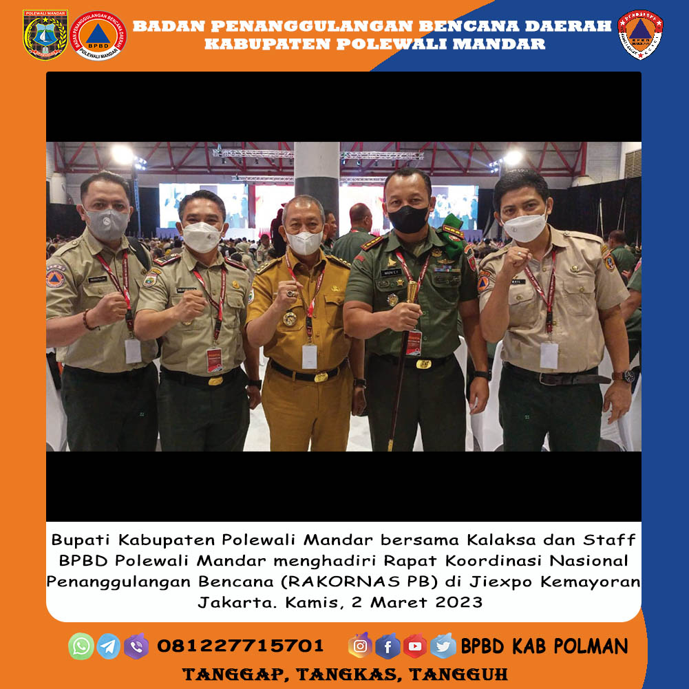 Halo #sahabattangguh Bupati Polewali Mandar bersama Kalaksa dan Staff BPBD Polewali Mandar menghadiri Rapat Koordinasi Nasional Penanggulangan Bencana (RAKORNAS PB) di Jiexpo Kemayoran Jakarta. Setelah menghadiri rapat Koordinasi Nasional Penanggulangan Bencana (RAKORNAS PB) Bupati Polewali Mandar Andi Ibrahim Masdar beserta Kalaksa BPBD Polewali Mandar Andi Afandi Rahman, bergerak cepat bersilaturahmi dengan kepala BNPB Letjen Suharyanto MM. Kamis, 2 Maret 2023#salamkemanusiaan #kitajagaalamala...