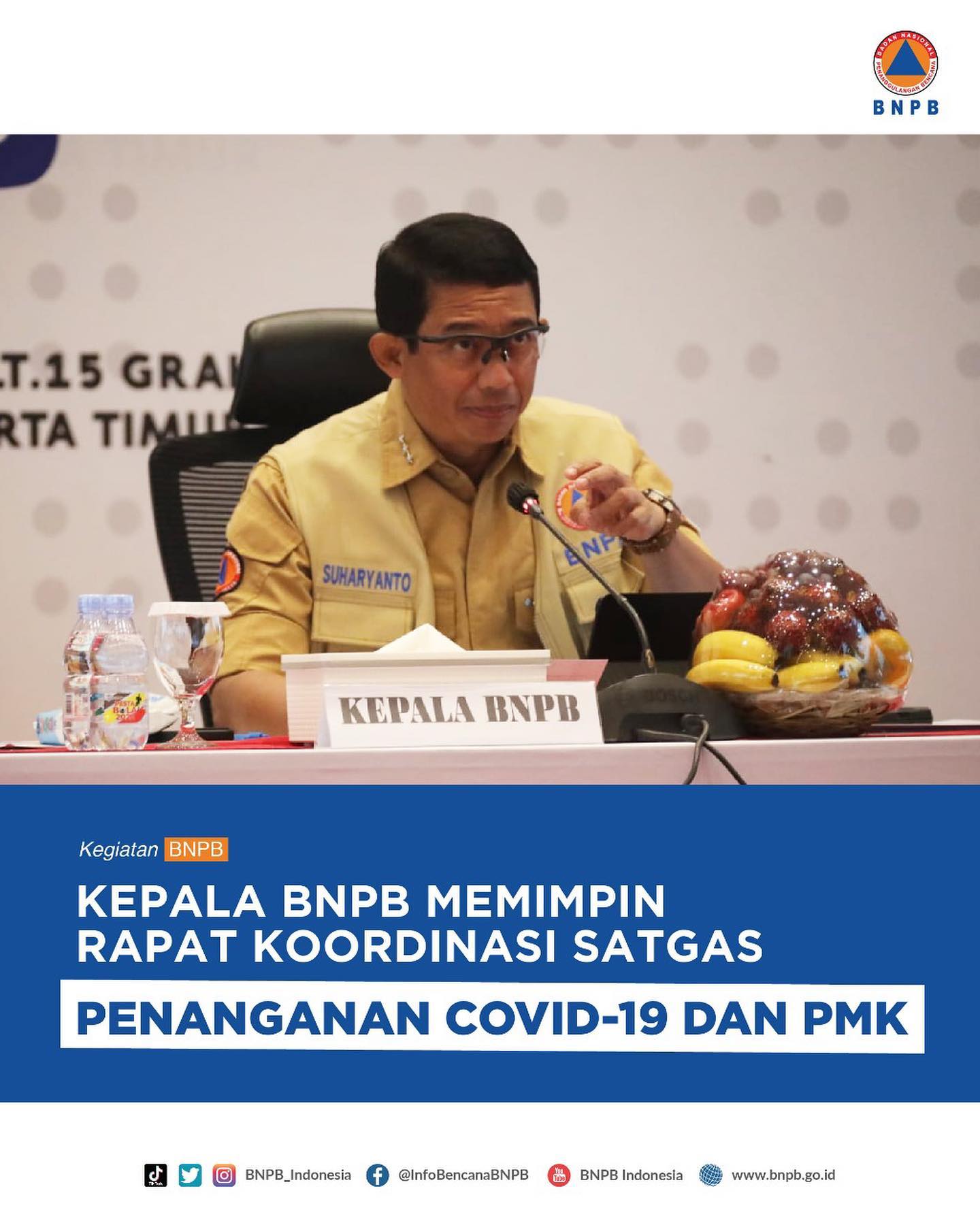 Repost Halo #SahabatTangguh Kepala BNPB Letjen TNI Suharyanto memimpin rapat Koordinasi Satgas Penanganan Covid-19 dan Penyakit Mulut dan Kuku di Aula Sutopo Purwo Nugroho, Graha BNPB, Jakarta pada Selasa (17/1).Rapat kali ini diadakan secara hybrid yang dihadiri perwakilan BNPB, Kementerian/Lembaga pusat, TNI/Polri dan pemerintah daerah serta OPD terkait.#BNPBIndonesia #SiapUntukSelamat #BudayaSadarBencana...