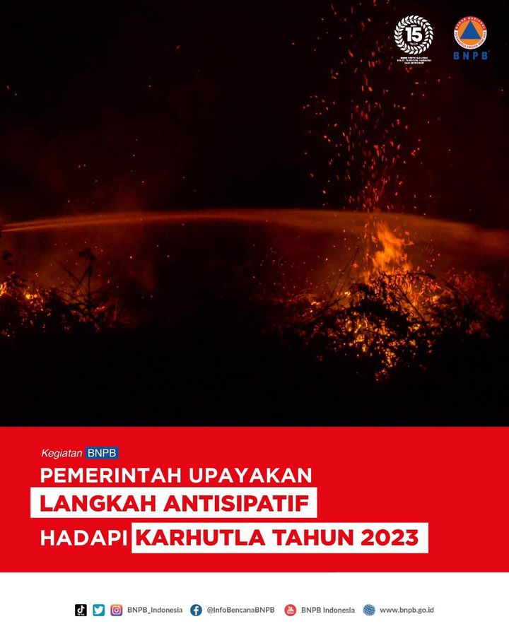 Halo #SahabatTangguhDalam rangka antisipasi bencana kebakaran hutan dan lahan (Karhutla) pada periode tahun 2023, Badan Nasional Penanggulangan Bencana (BNPB) bersama Kementerian Bidang Politik Hukum dan Keamanan (Kemenko Polhukam), Kementerian Lingkungan Hidup dan Kehutanan (KLHK), Mabes Polri dan Mabes TNI melakukan rapat koordinasi di Graha BNPB, Jakarta, Rabu (25/1).Rapat koordinasi secara hybrid yang juga diikuti oleh sejumlah Pemerintah Daerah dengan tingkat kerawanan karhutla tinggi itu, ...
