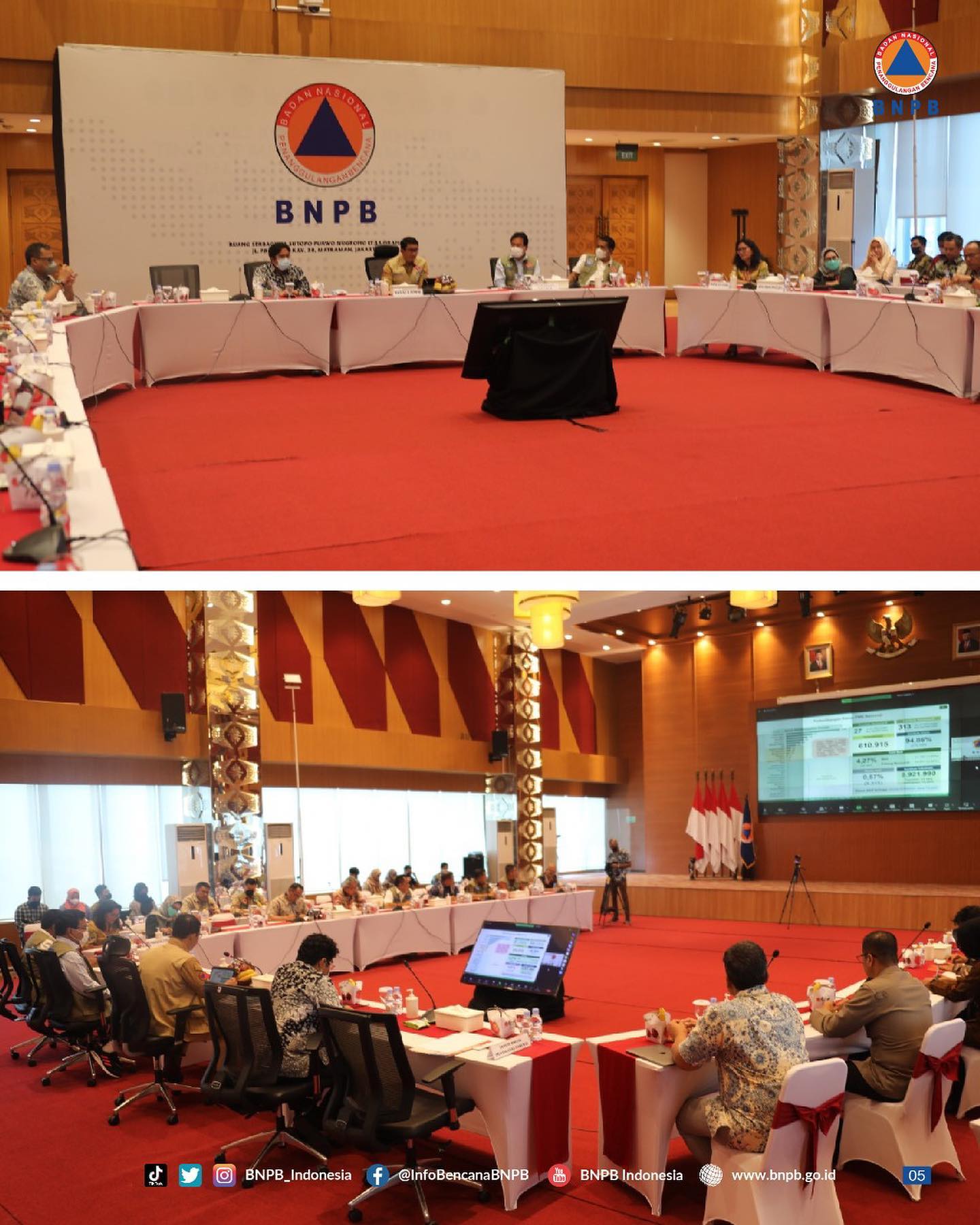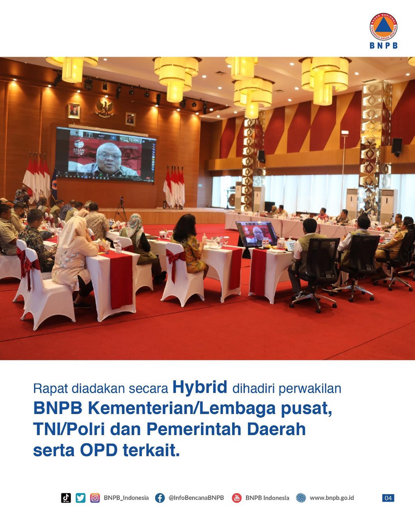 Rapat kali ini diadakan secara hybrid yang dihadiri perwakilan BNPB, Kementerian/Lembaga pusat, TNI/Polri dan pemerintah daerah serta OPD terkait.