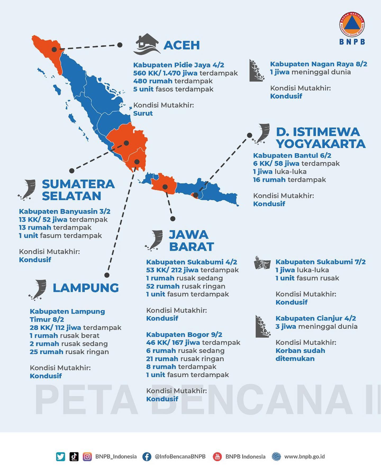 Berikut infografis bencana mingguan berdampak signifikan periode 2 - 9 Februari 2023.