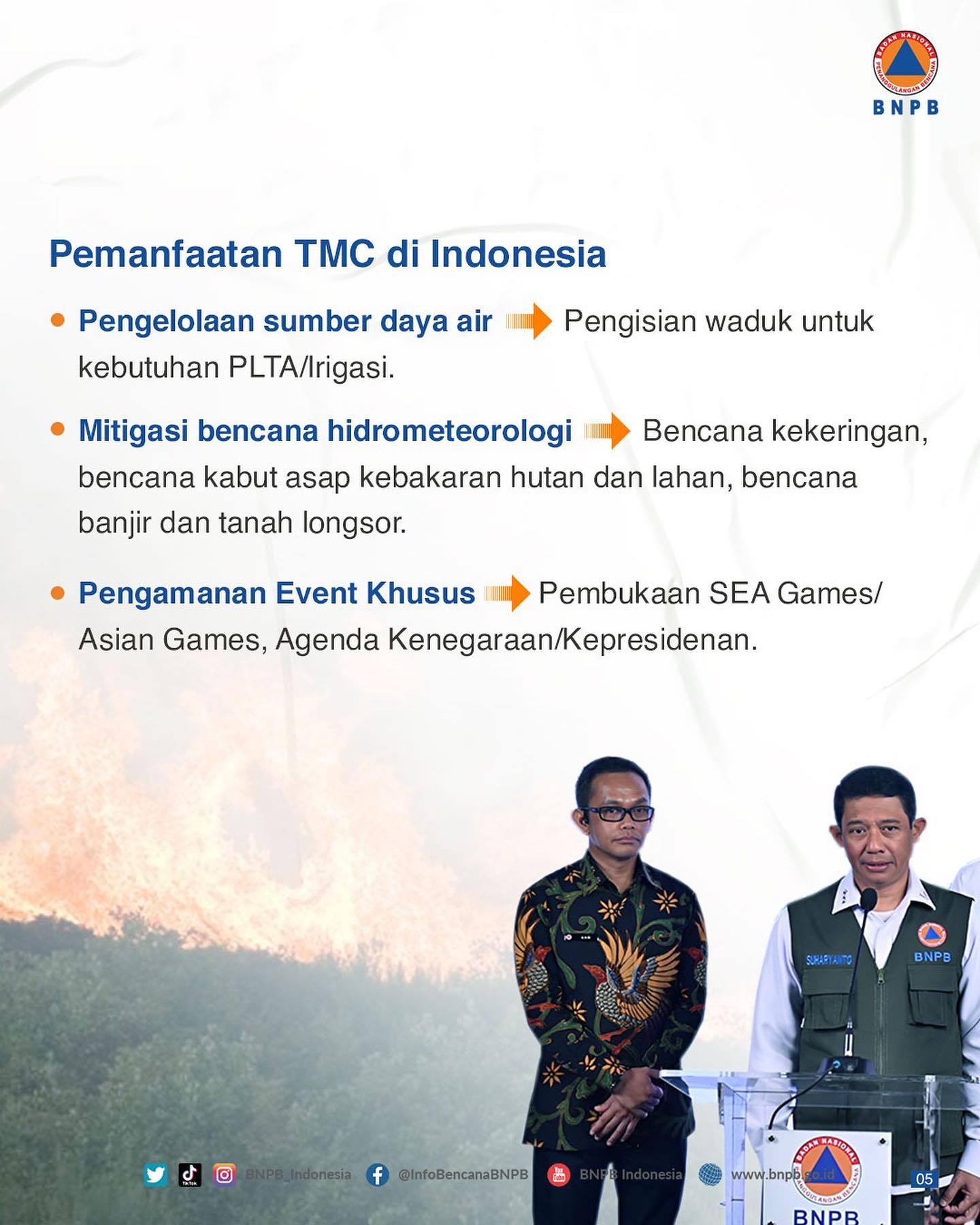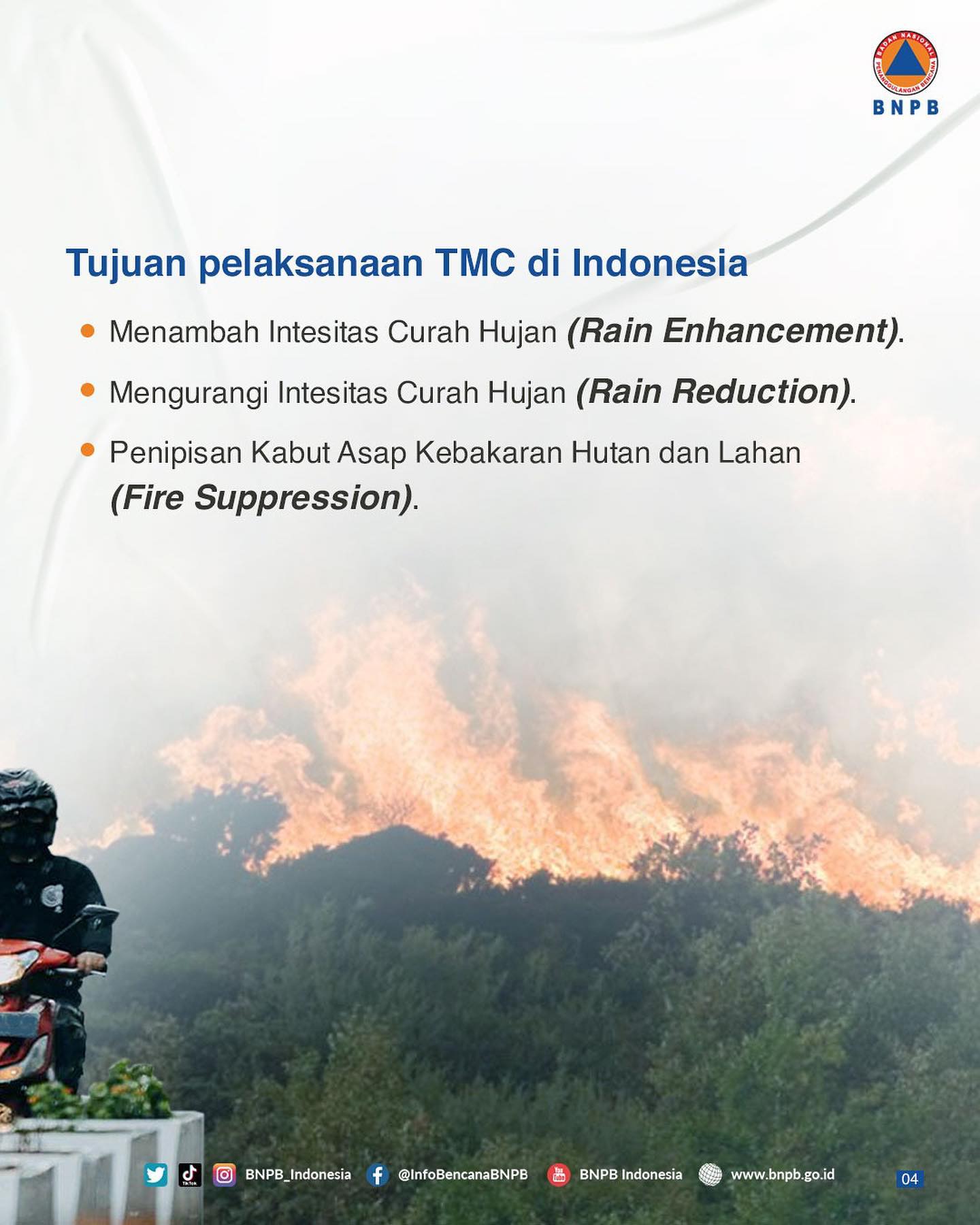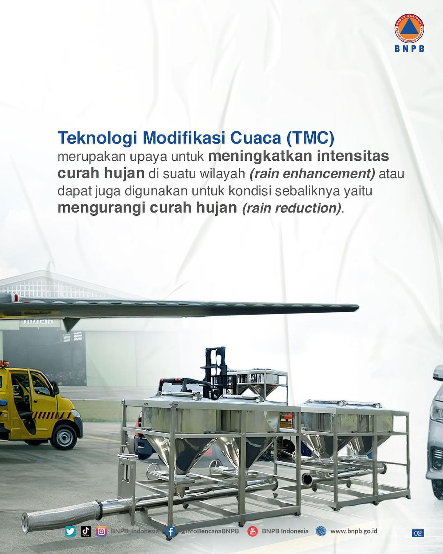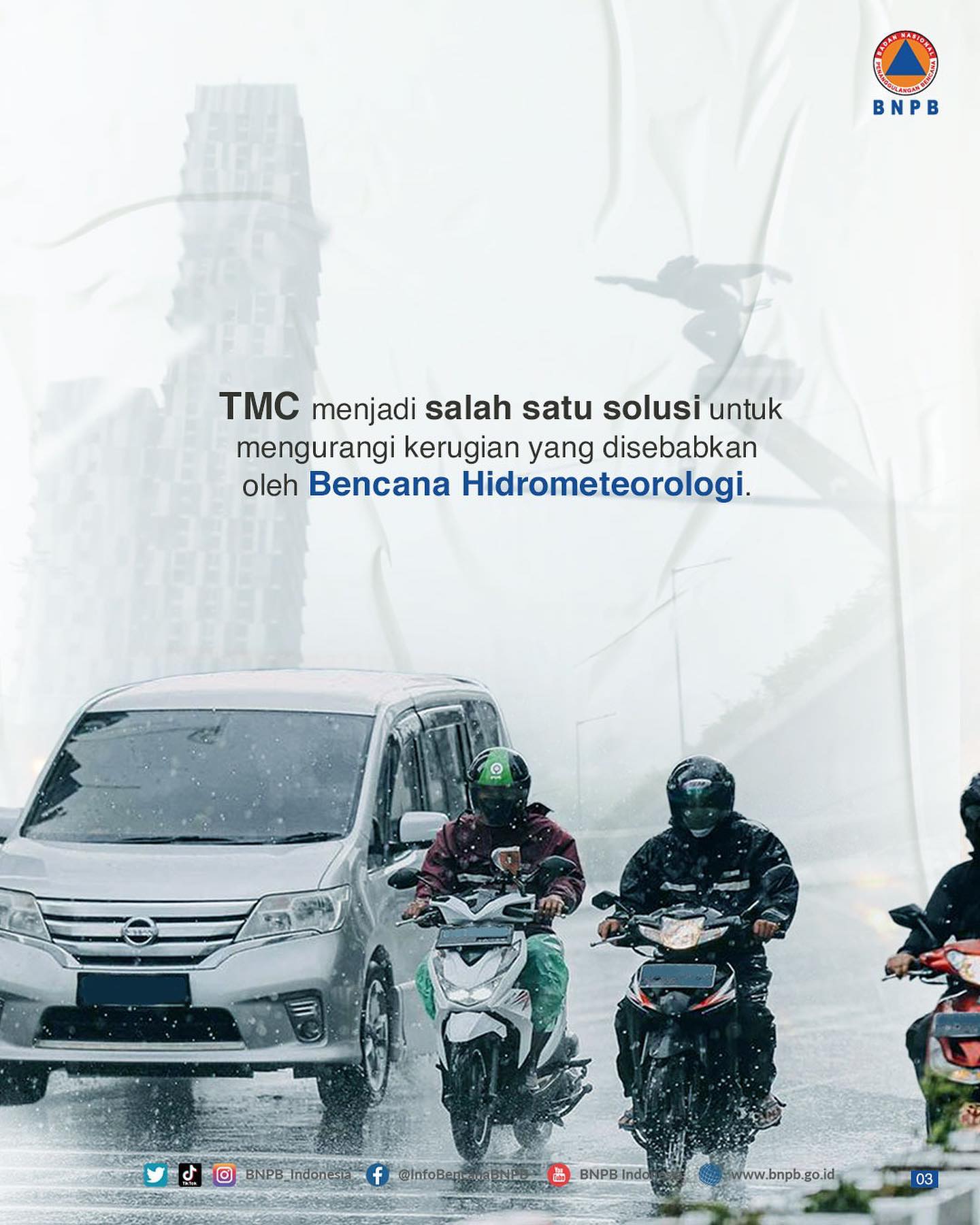 Bencana hidrometeorologi basah seperti banjir, tanah longsor dan cuaca ekstrem masih mengintai beberapa wilayah di Indonesia. BNPB bersama instansi terkait terus melakukan upaya pencegahan untuk meminimalisir dampak kerugian dan korban jiwa, salah satunya melalui Teknologi Modifikasi Cuaca (TMC).